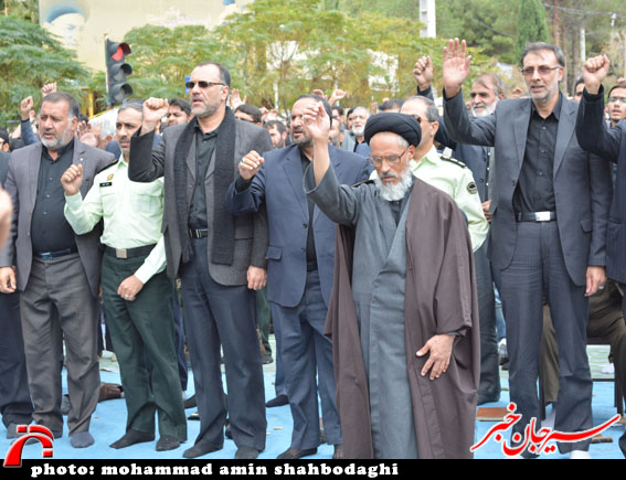 همچنین به مناسب روز ۱۳ آبان وتسخیر لانه جاسوسی آمریکا نماز گزاران با فریاد مرگ بر آمریکا ومرگ بر داعش انزجار خود را از این منافقین اعلام کردند.