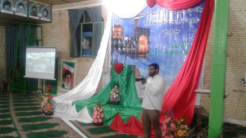 سرگرد پاسدار رضا اسماعیلی کاخ فرمانده سپاه ناحیه ارزوئیه ضمن خیر مقدم به مهمانان حاضر ولادت امام رضا(علیه السلام)، امام هدایت و ولایت را تبریک گفتند.